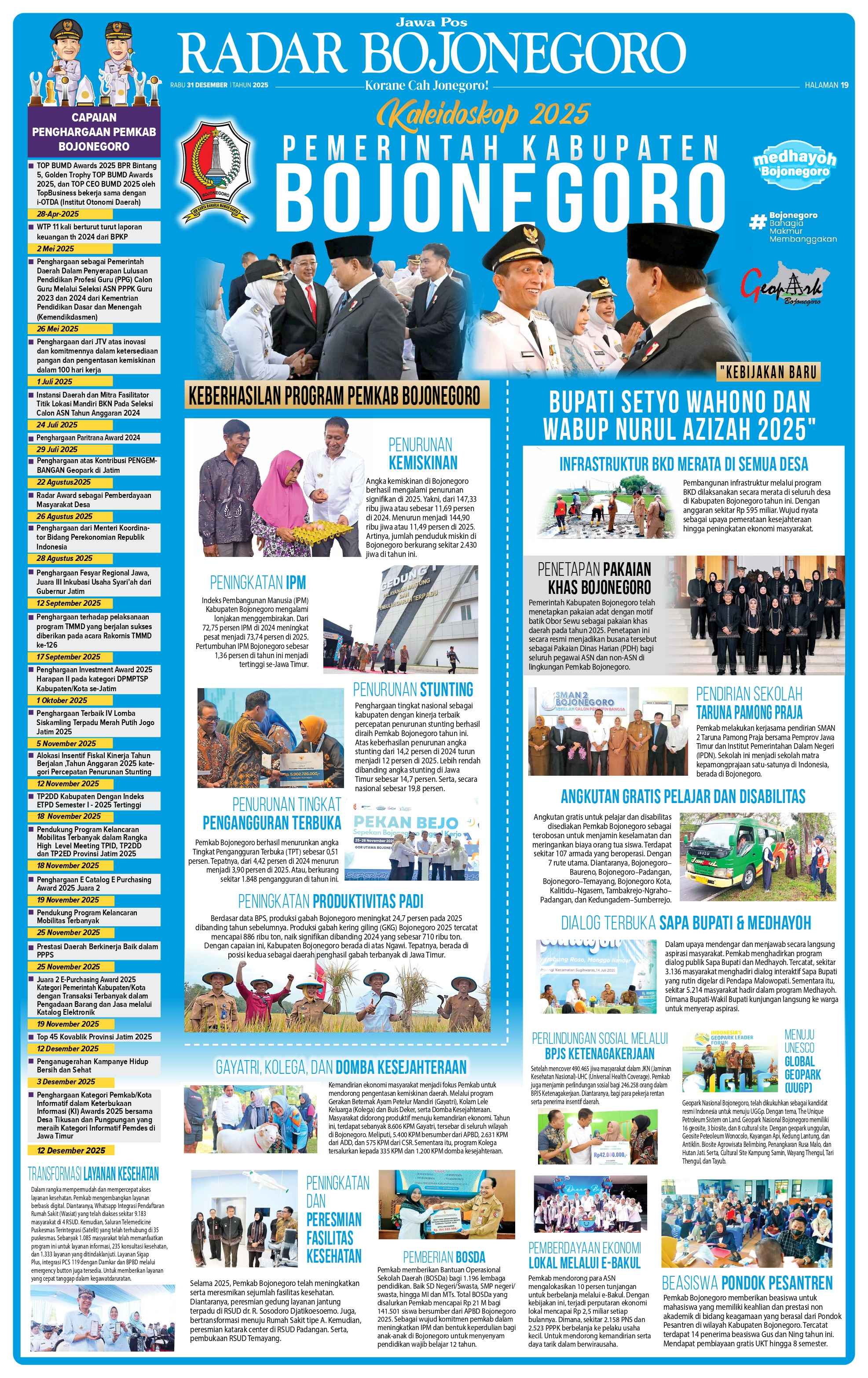 Pemerintah Kabupaten Bojonegoro pada tahun 2025 berhasil menunjukkan kinerja pembangunan yang menggembirakan melalui berbagai indikator strategis. Berbagai program pengentasan kemiskinan yang diiringi penguatan ekonomi masyarakat...